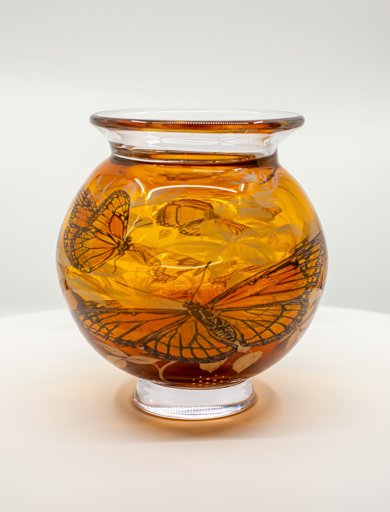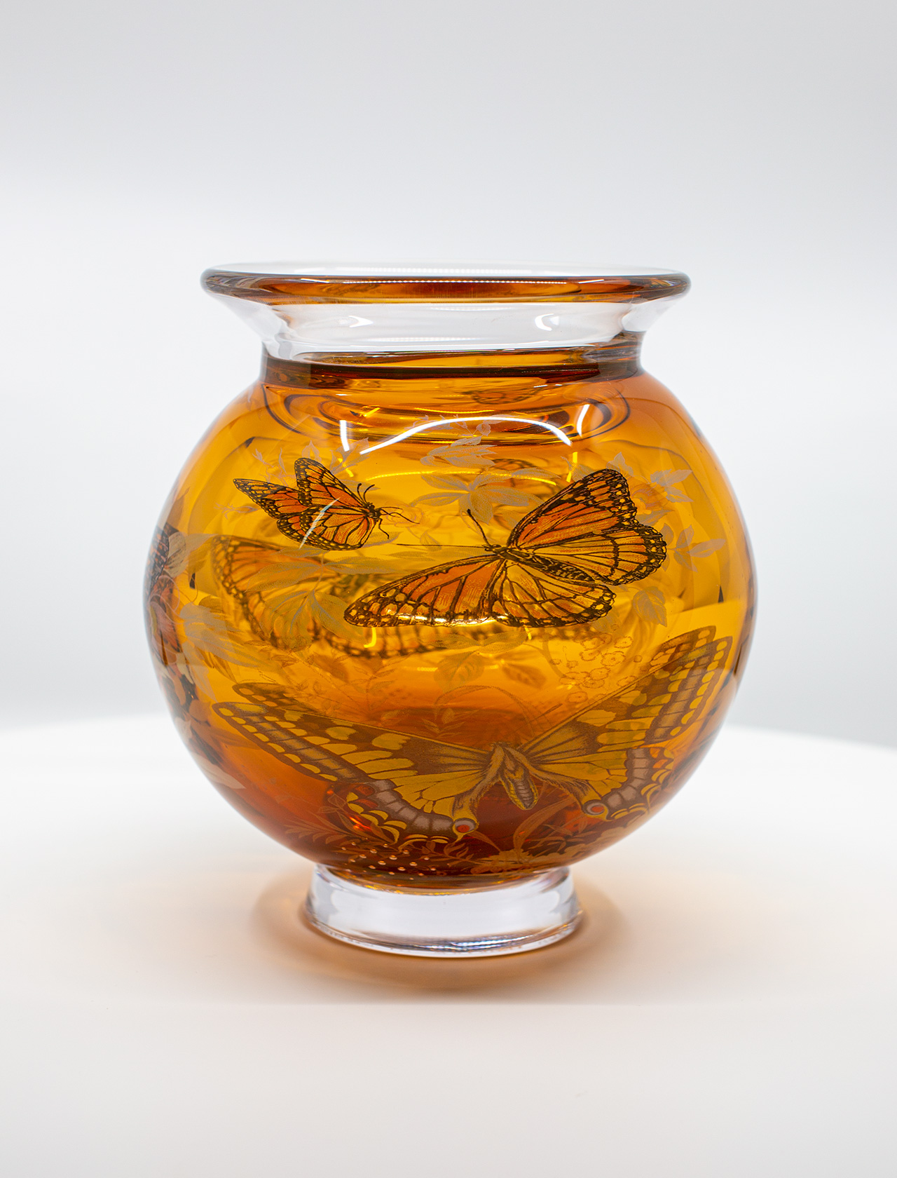 Unik vas i Graalteknik med klarglashylsa & fjärilsmotiv.